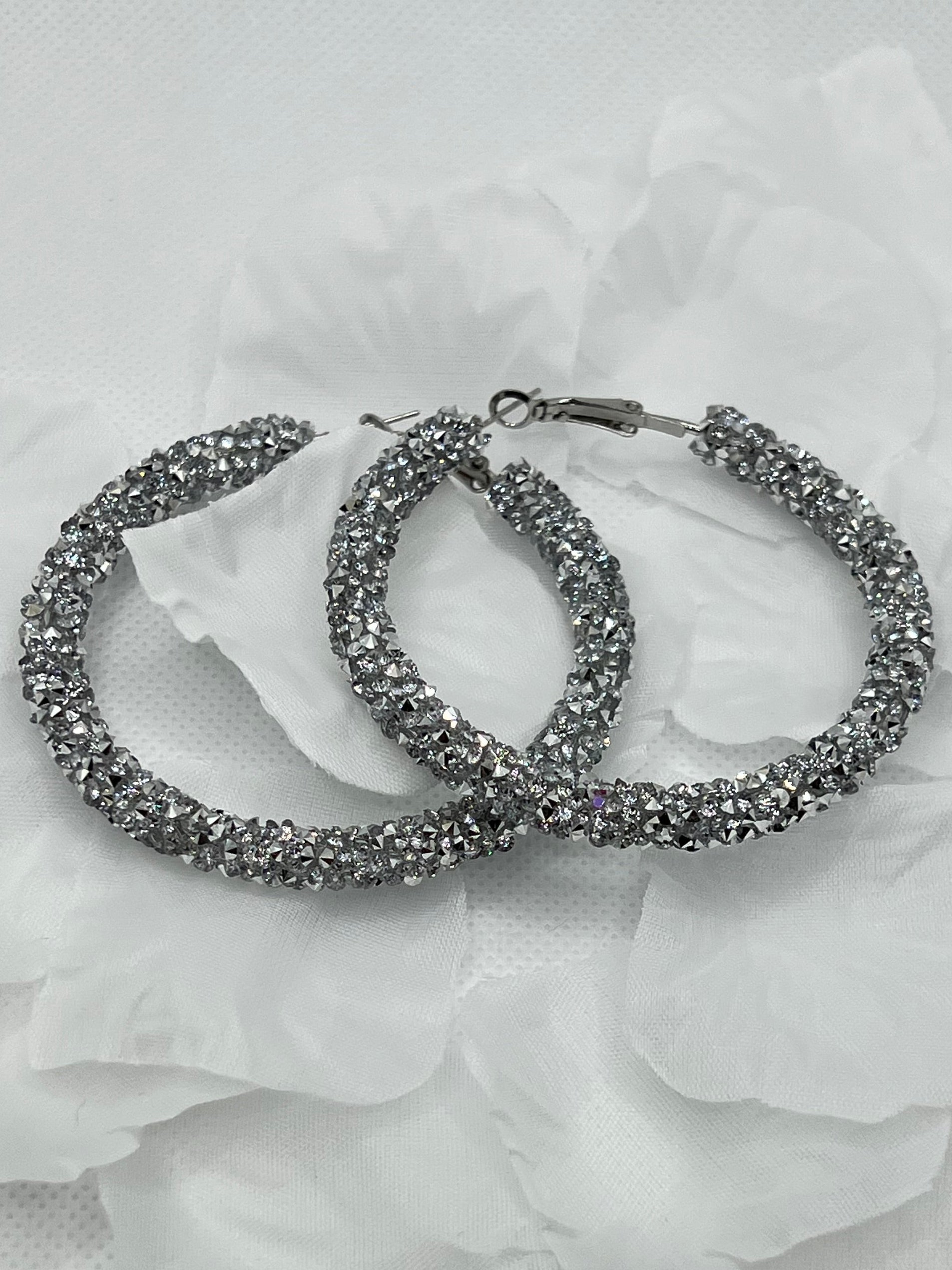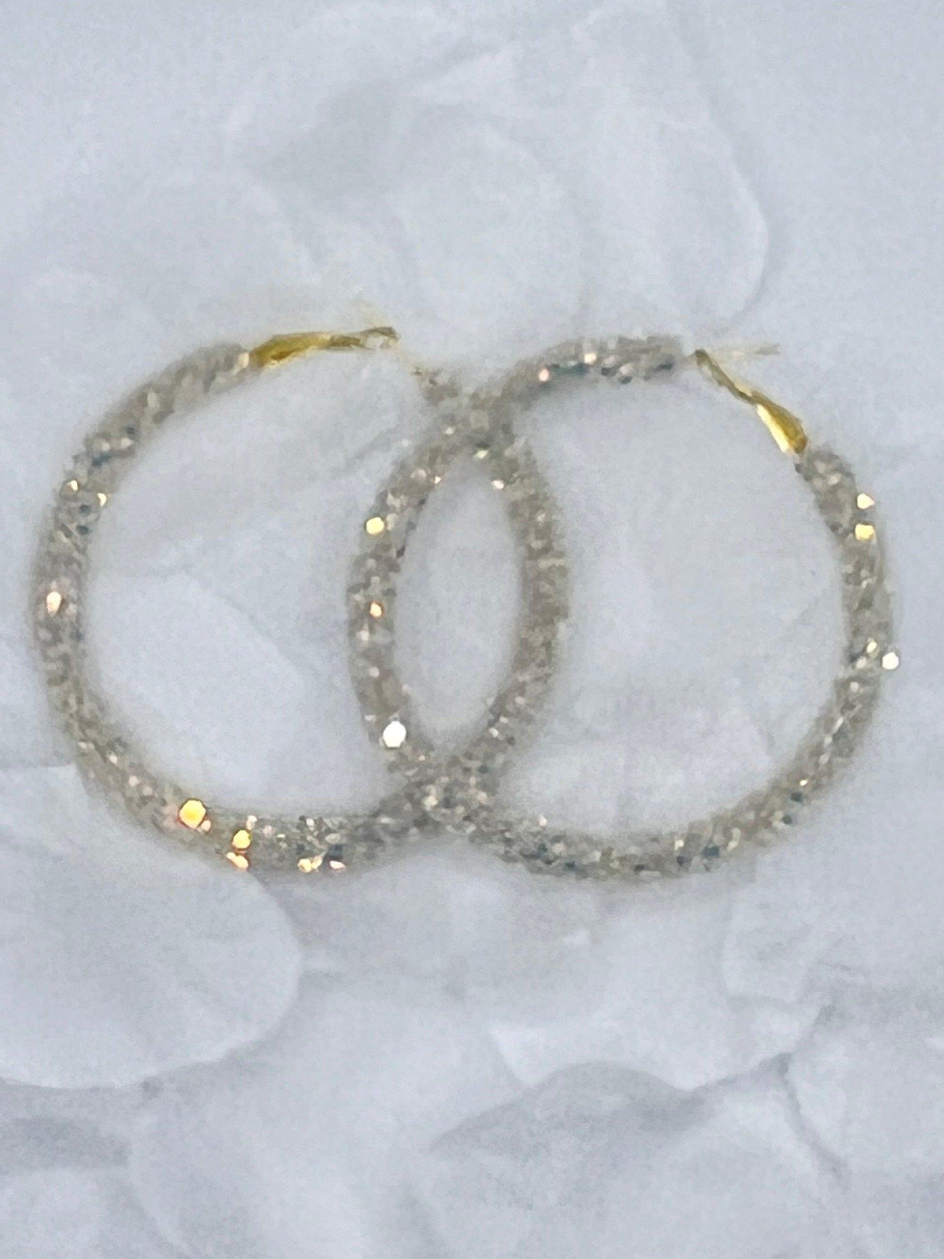Add a little razzle dazzle to your outfit with these chunky glitter earrings. Make a statement without saying a word with these 60mm hoop lever back earrings dressed in glitter.